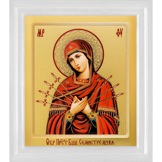 Икона в багетной рамке "БМ Семистрельная", 135*160 мм, цвет-белый