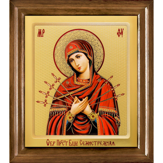 Икона в багетной рамке "БМ Семистрельная", 135*160 мм, цвет-коричневый