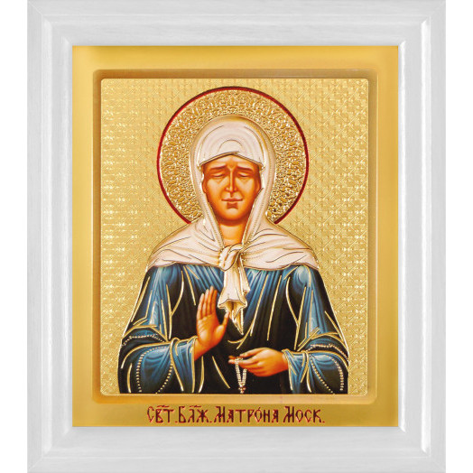 Икона в багетной рамке "св.Блж.Матрона Московская", 135*160 мм, цвет-белый