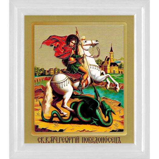 Икона в багетной рамке "Св. Георгий Победоносец", 135*160 мм, цвет-белый