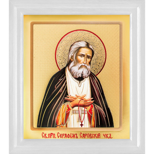 Икона в багетной рамке "Св. Серафим Саровский", 135*160 мм, цвет-белый