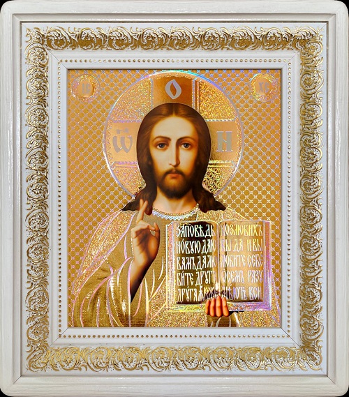 Икона в белом киоте "Господь Вседержитель" (240*275 мм) с багетом