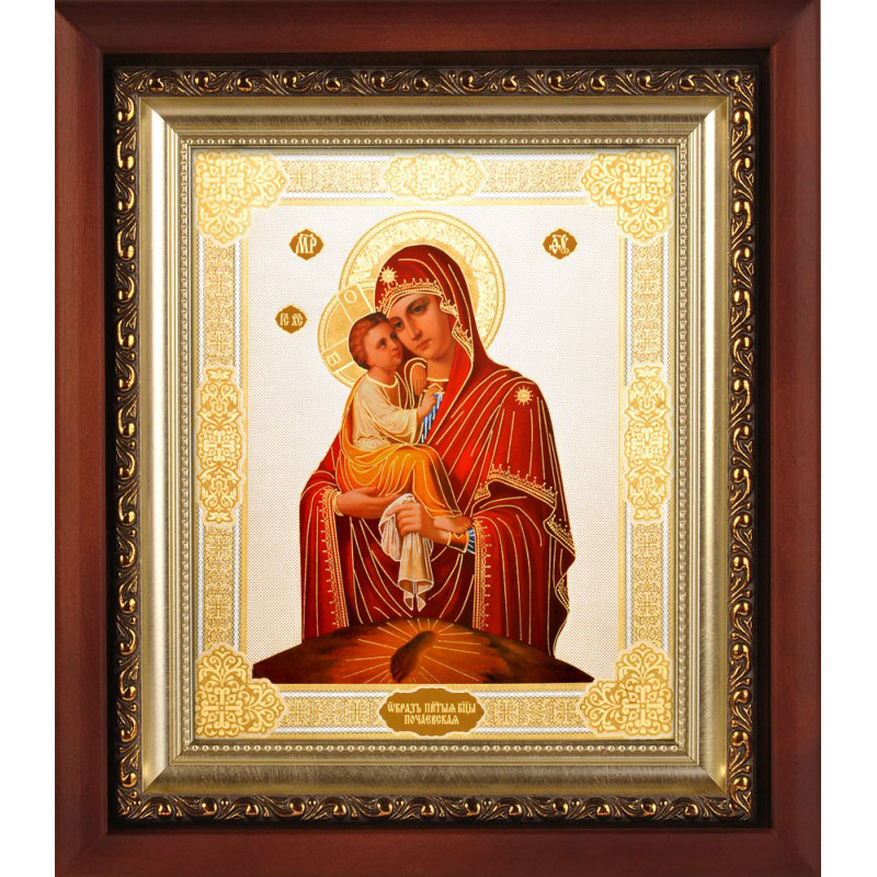 Икона Божьей Матери «Почаевская» верно и прочно займет свое достойное место в домашнем иконостасе, будет прекрасным подарком для близких на любое торжество. Изображение выдержано в полном соответствии с установленными канонами Церкви. Киот с багетом надежно защитит изделие от внешних воздействий. Будучи ответственным и добросовестным изготовителем, мастерские «Колокол» гарантируют высокое качество продукции, ее адекватно-невысокую стоимость и надежный уровень сервисных услуг. Больше различных икон и товаров вы можете найти в нашем интернет-магазине.
