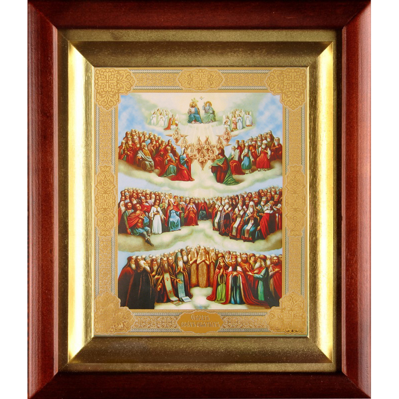 Динамично развивающиеся производственные мастерские «Колокол» с любовью к Богу и людям предлагают церковную утварь различного назначения, в том числе - икону «Образ всех святых» в киоте. Деревянный ковчежец со стеклом надежно защитит иконописный образ от неблагоприятного воздействия извне и повреждений различного рода. Будучи ответственным и добросовестным изготовителем, мастерские «Колокол» гарантируют высокое качество продукции, ее адекватно-невысокую стоимость и надежный уровень сервисных услуг. Больше различных икон и товаров вы можете найти в нашем интернет-магазине.