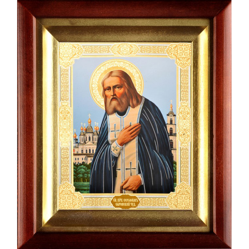 Икона преподобного Серафима Саровского особо почитаема в православии. Этот великий святой подвизался в подвиге столпничества и тысячу ночей провел в молитве, отбивая нападки «врага рода человеческого». Из 16-ти лет, проведенных в пустыне, он три провел в безмолвии, а шесть лет принимал страждущих, утешая и исцеляя их. Народ своего «батюшку Серафима» еще при его жизни почитал за святого и притекал к его заступничеству в тяжелых житейских ситуациях. В каждом православном храме имеется икона преподобного Серафима Саровского. Молясь пред нею, верующие получают защиту от искушений/бед/напастей, разрешение проблем, укрепление в вере. Преподобный Серафим Саровский и сегодня помогает выстоять в борьбе с наитяжкими грехами - унынием и скорбью. Днями памяти святого установлены 1 августа и 15 января – дни его рождения и кончины.Динамично развивающиеся производственные мастерские «Колокол» с любовью к Богу и людям предлагают церковную утварь различного назначения, в том числе - икону преподобного Серафима Саровского в киоте. Деревянный ковчежец со стеклом надежно защитит иконописный образ от неблагоприятного воздействия извне и повреждений различного рода. Будучи ответственным и добросовестным изготовителем, мастерские «Колокол» гарантируют высокое качество продукции, ее адекватно-невысокую стоимость и надежный уровень сервисных услуг. Больше различных икон и товаров вы можете найти в нашем интернет-магазине.