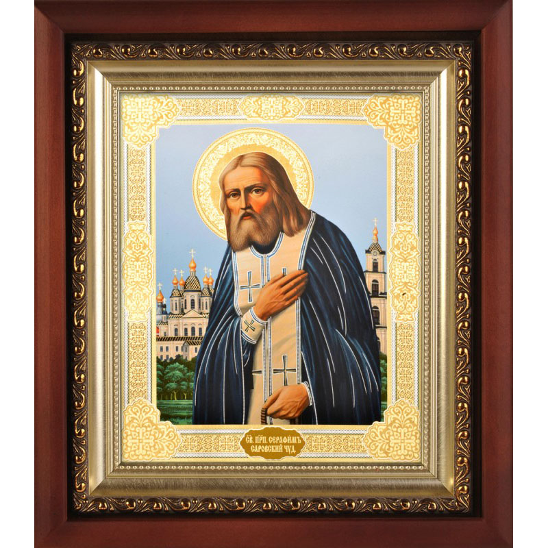 Динамично развивающиеся производственные мастерские «Колокол» с любовью к Богу и людям предлагают церковную утварь различного назначения, в том числе - икону преподобного Серафима Саровского в киоте с багетом. Деревянный ковчежец со стеклом надежно защитит иконописный образ от неблагоприятного воздействия извне и повреждений различного рода. Будучи ответственным и добросовестным изготовителем, мастерские «Колокол» гарантируют высокое качество продукции, ее адекватно-невысокую стоимость и надежный уровень сервисных услуг. Больше различных икон и товаров вы можете найти в нашем интернет-магазине.