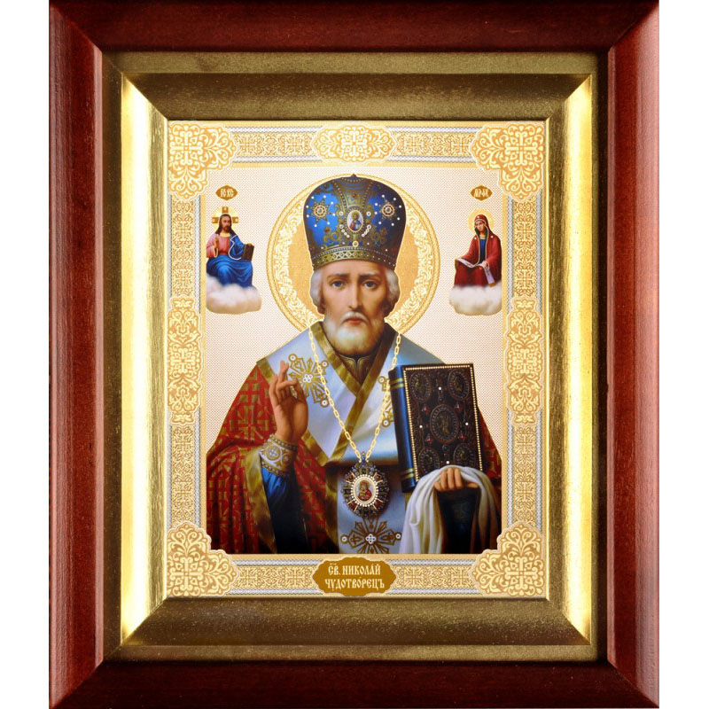 Икона с образом Николая Чудотворца олицетворяет одного из самых любимых и почитаемых святых на Руси. Святителю Николаю молятся в любых житейских нуждах, он скорый помощник морякам, путешественникам, купцам, несправедливо осужденным и детям. Однако помочь он может всякому, кто искренне откроет свое сердце в молитве. Обращаясь к нему с искренней верой, люди находят утешение в тяжелых жизненных перепятиях. На небольшом образе святой изображен по пояс, в левой руке он держит Святое Писание, а правая рука поднята для благословения. Икона помещена в киот, который надежно защитит иконописный образ от неблагоприятного воздействия извне и повреждений различного рода. Дни памяти Николая Чудотворца: 6 (19) декабря — день праведной кончины; 9 (22) мая — день прибытия мощей в город Бари; 29 июля (11 августа) — рождество святого Николая.