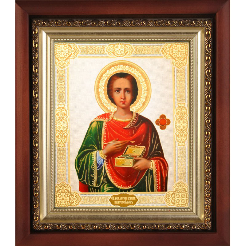 Икона в киоте аналойная (172*208) "Вмч. и целит. Пентелеймон" с багетом