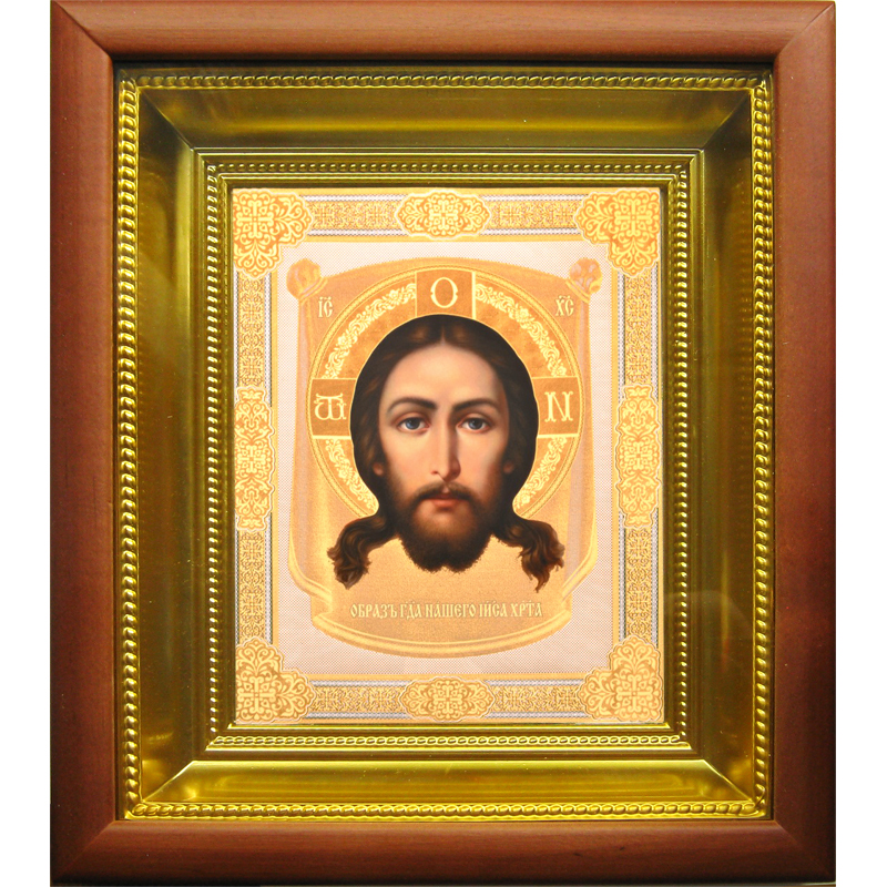 Икона в киоте аналойная с золотым подрамником (172*208) "Спас Нерукотворный"
