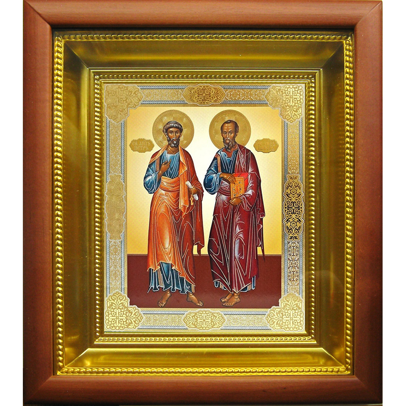 Так, пред иконой святых апостолов Петра и Павла молятся для утверждения в вере, дарования исцелений и помощи в постижении наук. Парное изображение апостолов сложилось в честь памяти их мученической кончины в один день и может считаться иконографией самого праздника, отмечаемого 12.07 по новому стилю. Много сделав для распространения света христианства по всей земле, святые апостолы помогают в любых богоугодных начинаниях. Пройдя различный путь к славе Небесной, апостолы изображаются по-разному: святой Петр держит в руках символические ключи от Царствия Небесного (иногда – меч, считаемый духовным), а Павел – закрытую книгу, поскольку сам есть автор 14-ти посланий.Динамично развивающиеся производственные мастерские «Колокол» с любовью к Богу и людям предлагают церковную утварь различного назначения, в том числе - икону святых апостолов Петра и Павла в киоте с золотым подрамником. Деревянный ковчежец со стеклом надежно защитит иконописный образ от неблагоприятного воздействия извне и повреждений различного рода. Будучи ответственным и добросовестным изготовителем, мастерские «Колокол» гарантируют высокое качество продукции, ее адекватно-невысокую стоимость и надежный уровень сервисных услуг. Больше различных икон и товаров вы можете найти в нашем интернет-магазине.