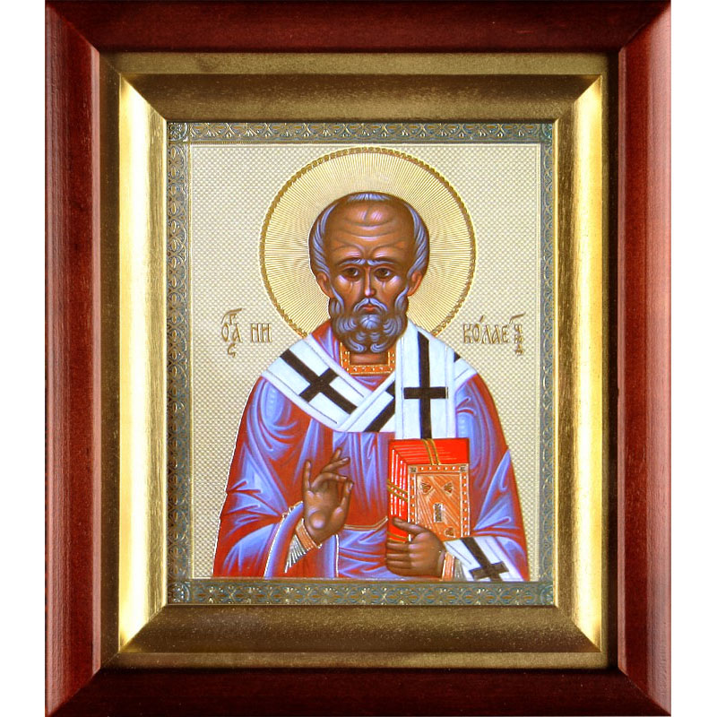 Икона с образом Николая Чудотворца олицетворяет одного из самых любимых и почитаемых святых на Руси. Святителю Николаю молятся в любых житейских нуждах, он скорый помощник морякам, путешественникам, купцам, несправедливо осужденным и детям. Однако помочь он может всякому, кто искренне откроет свое сердце в молитве. Обращаясь к нему с искренней верой, люди находят утешение в тяжелых жизненных перепятиях. На небольшом образе святой изображен по пояс, в левой руке он держит Святое Писание, а правая рука поднята для благословения. Икона помещена в киот, который надежно защитит иконописный образ от неблагоприятного воздействия извне и повреждений различного рода. Дни памяти Николая Чудотворца: 6 (19) декабря — день праведной кончины; 9 (22) мая — день прибытия мощей в город Бари; 29 июля (11 августа) — рождество святого Николая.