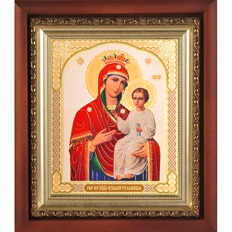 Богородичный образ «Избавительница» - яркое свидетельство неиссякаемой Божьей милости ко всем верующим христианам. Прославившись чудоесами с давних времен, этот образ был передан с греческого Афона в Новый Афон (окрестности Сухуми). По искренним молитвам пред этим образом Богородицы, относящемуся к иконографическому типу «Одигитрия», происходят чудесные исцеления от немощей души и тела, беснования и избавления от различных ед. Также ниспосылается благодатная сила для скорого разрешения житейских трудностей. День чествования чудотворного образа – 30 октября.Динамично развивающиеся производственные мастерские «Колокол» с любовью к Богу и людям предлагают церковную утварь различного назначения, в том числе - икону Божией Матери «Избавительница» в киоте с багетом. Деревянный ковчежец со стеклом надежно защитит иконописный образ от неблагоприятного воздействия извне и повреждений различного рода. Будучи ответственным и добросовестным изготовителем, мастерские «Колокол» гарантируют высокое качество продукции, ее адекватно-невысокую стоимость и надежный уровень сервисных услуг. Больше различных икон и товаров вы можете найти в нашем интернет-магазине.