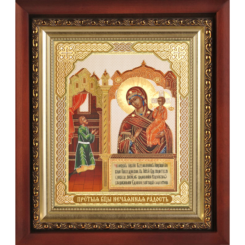 Икона Божией Матери «Нечаянная радость» верно и прочно займет свое достойное место в домашнем иконостасе, будет прекрасным подарком для близких на любое торжество. Изображение выдержано в полном соответствии с установленными канонами Церкви. Киот с багетом надежно защитит изделие от внешних воздействий. Будучи ответственным и добросовестным изготовителем, мастерские «Колокол» гарантируют высокое качество продукции, ее адекватно-невысокую стоимость и надежный уровень сервисных услуг. Больше различных икон и товаров вы можете найти в нашем интернет-магазине.
