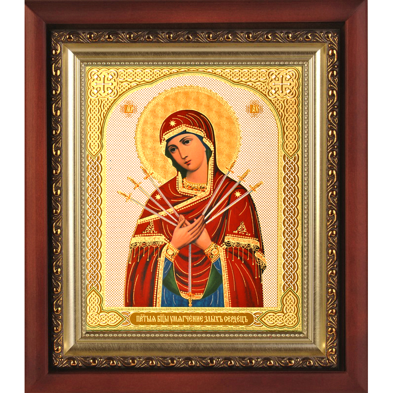 Икона Божией Матери «Умягчение злых сердец» – одна из любимых и почитаемых чудотворных икон России. На иконе изображена Пресвятая Богородица без Младенца, с семью стрелами, пронзающими грудь. Обращаются к данной иконе все верующие с молитвами о защите дома, о защите от злых помыслов и зависти, о примирении врагов и о восстановлении мира между враждующими. Также перед иконой молятся супруги о восставнолении мира в доме, родители о восстановлении мира между родителями и детьми. Божия Матерь никому не откажет при искренней и сердечной молитве в своем ходатайстве и заступничестве перед Господом Богом. Образ Пресвятой Богородицы почитают по новому стилю 13 августа.