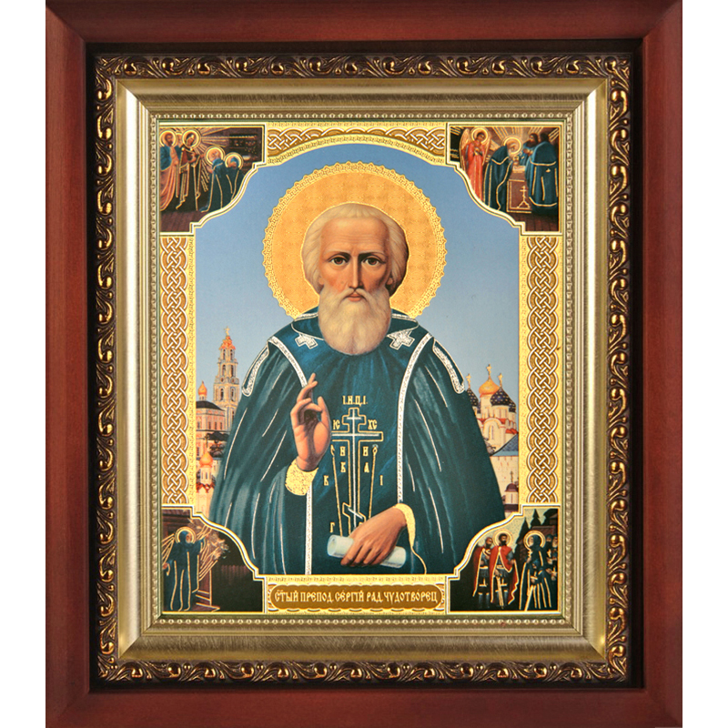 Икона в киоте с багетом "Прп. чдтв. Сергий Радонежский" (98*120)
