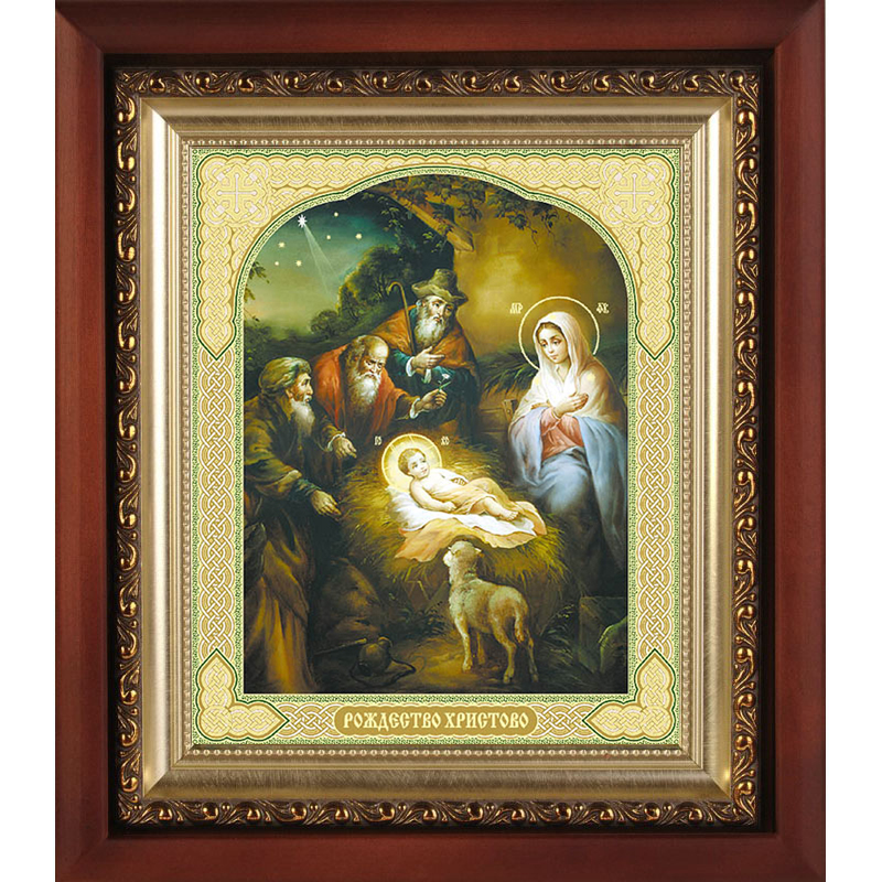 Икона в киоте с багетом "Рождество Христово" зеленый фон (98*120)