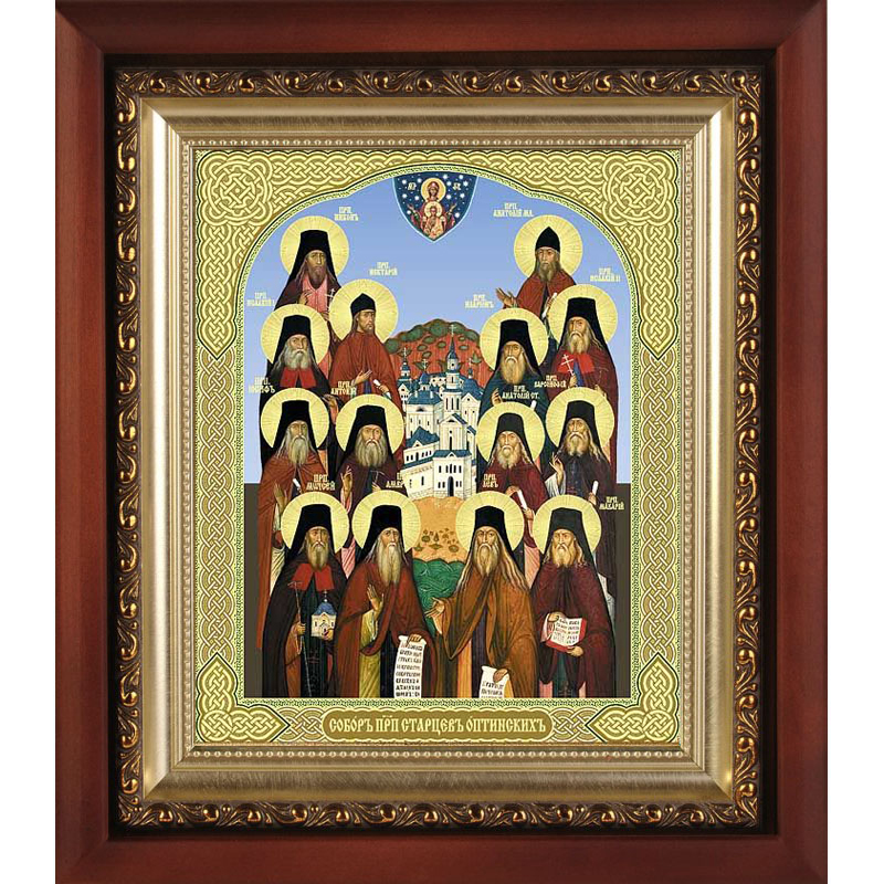 Икона в киоте с багетом "Собор Оптинских старцев" (98*120)