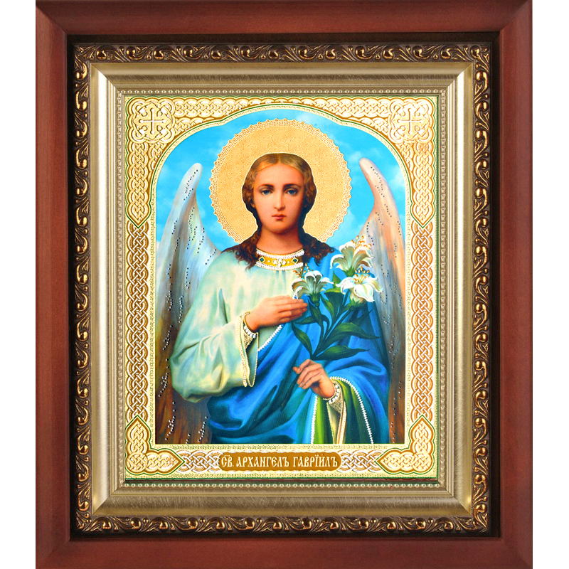Икона святого архангела Гавриила верно и прочно займет свое достойное место в домашнем иконостасе, будет прекрасным подарком для близких на любое торжество. Изображение выдержано в полном соответствии с установленными канонами Церкви. Киот с багетом надежно защитит изделие от внешних воздействий. Будучи ответственным и добросовестным изготовителем, мастерские «Колокол» гарантируют высокое качество продукции, ее адекватно-невысокую стоимость и надежный уровень сервисных услуг. Больше различных икон и товаров вы можете найти в нашем интернет-магазине.