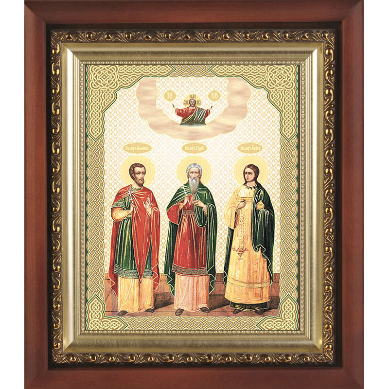 Икона в киоте с багетом "Свв. мчч. и испп. Гурий, Самон и Авив" (98*120)