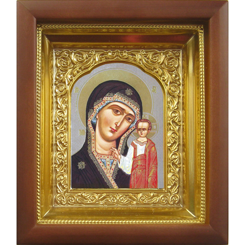 Динамично развивающиеся производственные мастерские «Колокол» с любовью к Богу и людям предлагают церковную утварь различного назначения, в том числе - икону Казанской Божией Матери в киоте с ризой, выполненную в поясном формате. Деревянный ковчежец со стеклом надежно защитит иконописный образ от неблагоприятного воздействия извне и повреждений различного рода. Будучи ответственным и добросовестным изготовителем, мастерские «Колокол» гарантируют высокое качество продукции, ее адекватно-невысокую стоимость и надежный уровень сервисных услуг. Больше различных икон и товаров вы можете найти в нашем интернет-магазине.