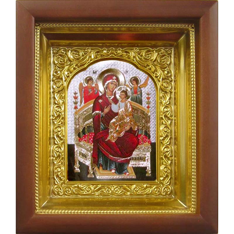 Динамично развивающиеся производственные мастерские «Колокол» с любовью к Богу и людям предлагают церковную утварь различного назначения, в том числе - икону «Божия Матерь Всецарица» в киоте с ризой. Деревянный ковчежец со стеклом надежно защитит иконописный образ от неблагоприятного воздействия извне и повреждений различного рода. Будучи ответственным и добросовестным изготовителем, мастерские «Колокол» гарантируют высокое качество продукции, ее адекватно-невысокую стоимость и надежный уровень сервисных услуг. Больше различных икон и товаров вы можете найти в нашем интернет-магазине.
