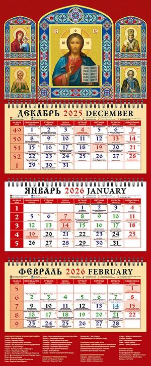 Календарь квартальный на 2026 г."Образ Господа Вседержителя",трехблочный (22607)