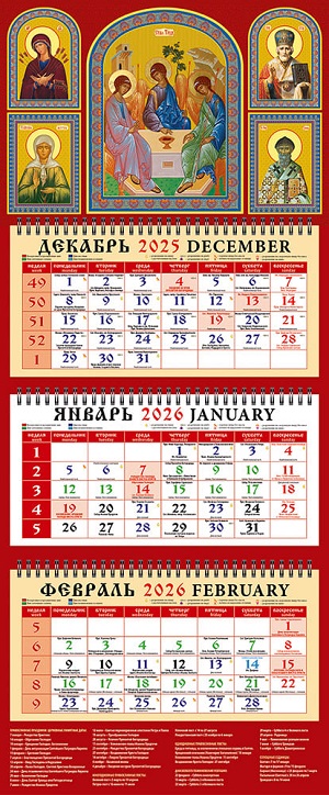 Календарь квартальный на 2026 г."Пресвятая Троица",трехблочный (22605)