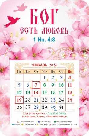 Календарь-магнит с отрывным блоком "Бог есть любовь. Розовый фон", 2026 год, 95х145 мм