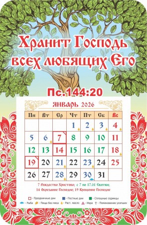 Календарь-магнит с отрывным блоком "Хранит Господь все любящих Его", 2026 год, 95х145 мм