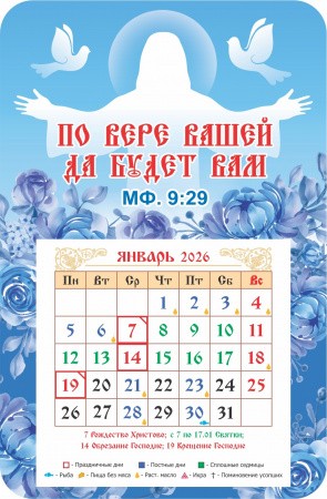 Календарь-магнит с отрывным блоком "По вере вашей да будет вам", 2026 год, 95х145 мм