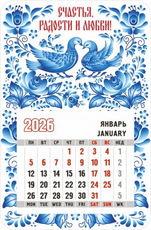 Календарь-магнит с отрывным блоком " Счастья, радости и любви!", 2026 год, 95х145 мм