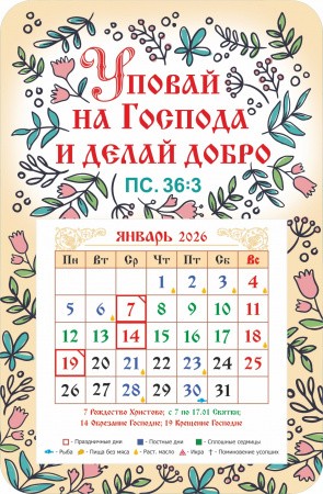 Календарь-магнит с отрывным блоком "Уповай на Господа и делай добро", 2026 год, 95х145 мм