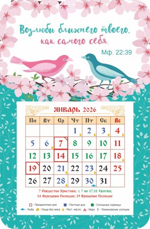 Календарь-магнит с отрывным блоком "Возлюби ближнего твоего", 2026 год, 95х145 мм