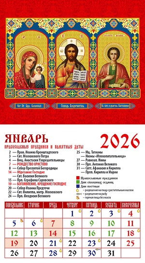Календарь на магните на 2026 г. "ПБ Казанская, Господь,Св.мч. Пантелеймон" 20612