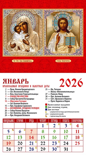 Календарь на магните на 2026 г. "ПБ Казанская,Господь Вседержитель" 20604