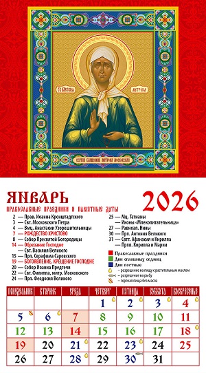 Календарь на магните на 2026 г. "Св.блж.Матрона Московская" 20606