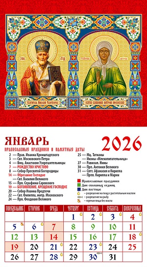 Календарь на магните на 2026 г. "Свт.Николай Чудотворец,Св.блж. Матрона Московская" 20609