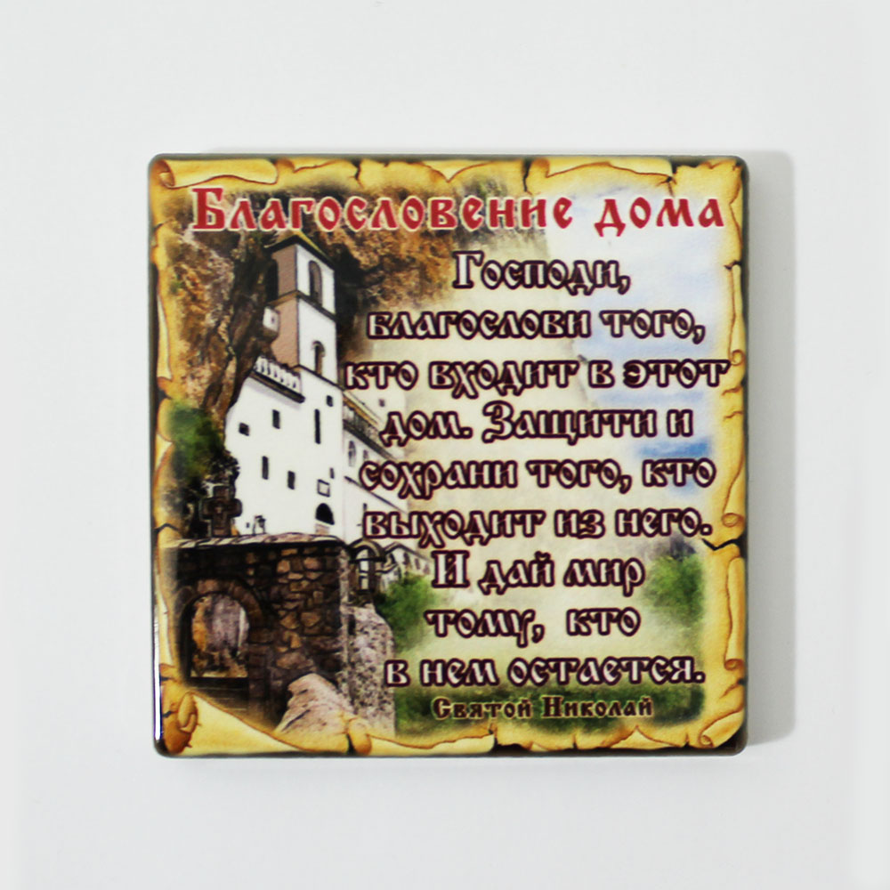 Керамическое панно на магните "Благословение дома" 7,5 * 7,5 см.