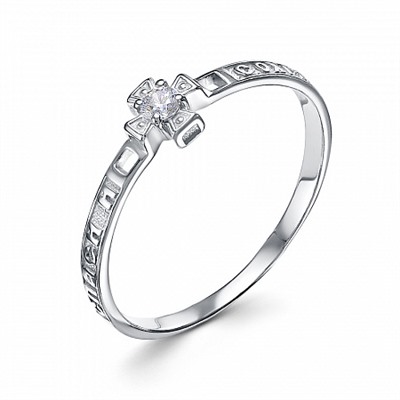 Кольцо из серебра 925* родированное литье с фианитом, 10-0774 размер 18,5