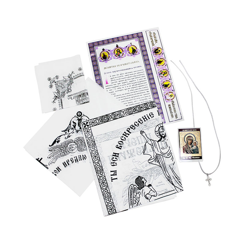 Комплект погребальный (покрывало, платы, наволочка без клапана, лам. икона, погребальный крест)