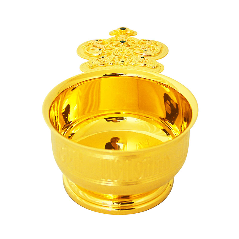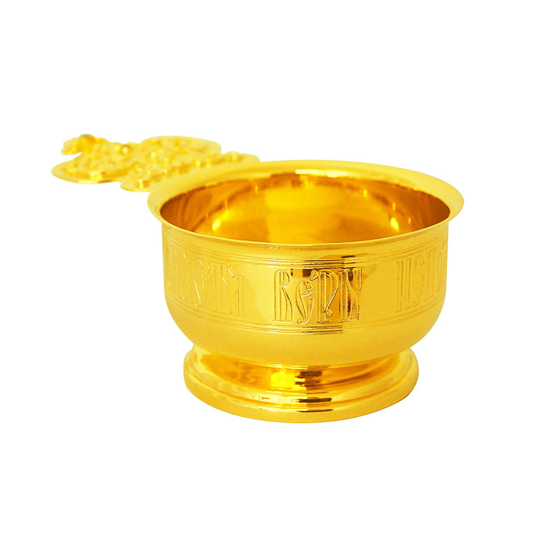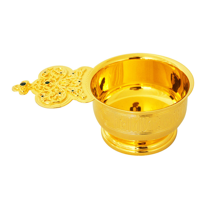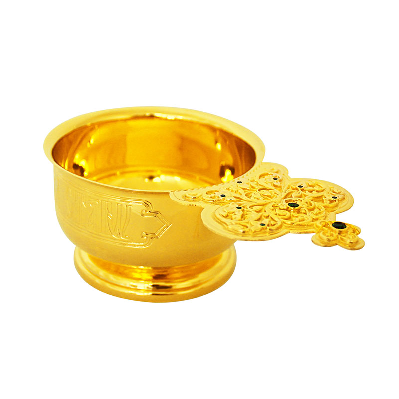 Предлагаемый производственными мастерскими «Колокол» ковш для теплоты выполнен из качественно позолоченной латуни с соблюдением традиций, обязательных при изготовлении богослужебной утвари. На внешней стороне ковша выгравировано: «Теплота веры исполни Духа Святого». Его ручка имеет обязательные очертания богато декорированной короны и венчается изображением в форме креста. Воспользовавшись каталогом «Колокола», приобретите церковную утварь эталонного качества по адекватно-невысокой стоимости.