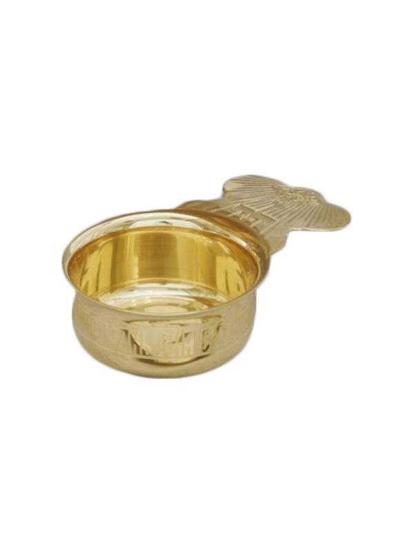 Предлагаемый производственными мастерскими «Колокол» ковш для теплоты выполнен из качественно позолоченного мельхиора с соблюдением традиций, обязательных при изготовлении богослужебной утвари. На внешней стороне ковша выгравировано: «Теплота веры исполни Духа Святого». Его ручка имеет обязательные очертания богато декорированной короны и венчается изображением в форме креста. Воспользовавшись каталогом «Колокола», приобретите церковную утварь эталонного качества по адекватно-невысокой стоимости.