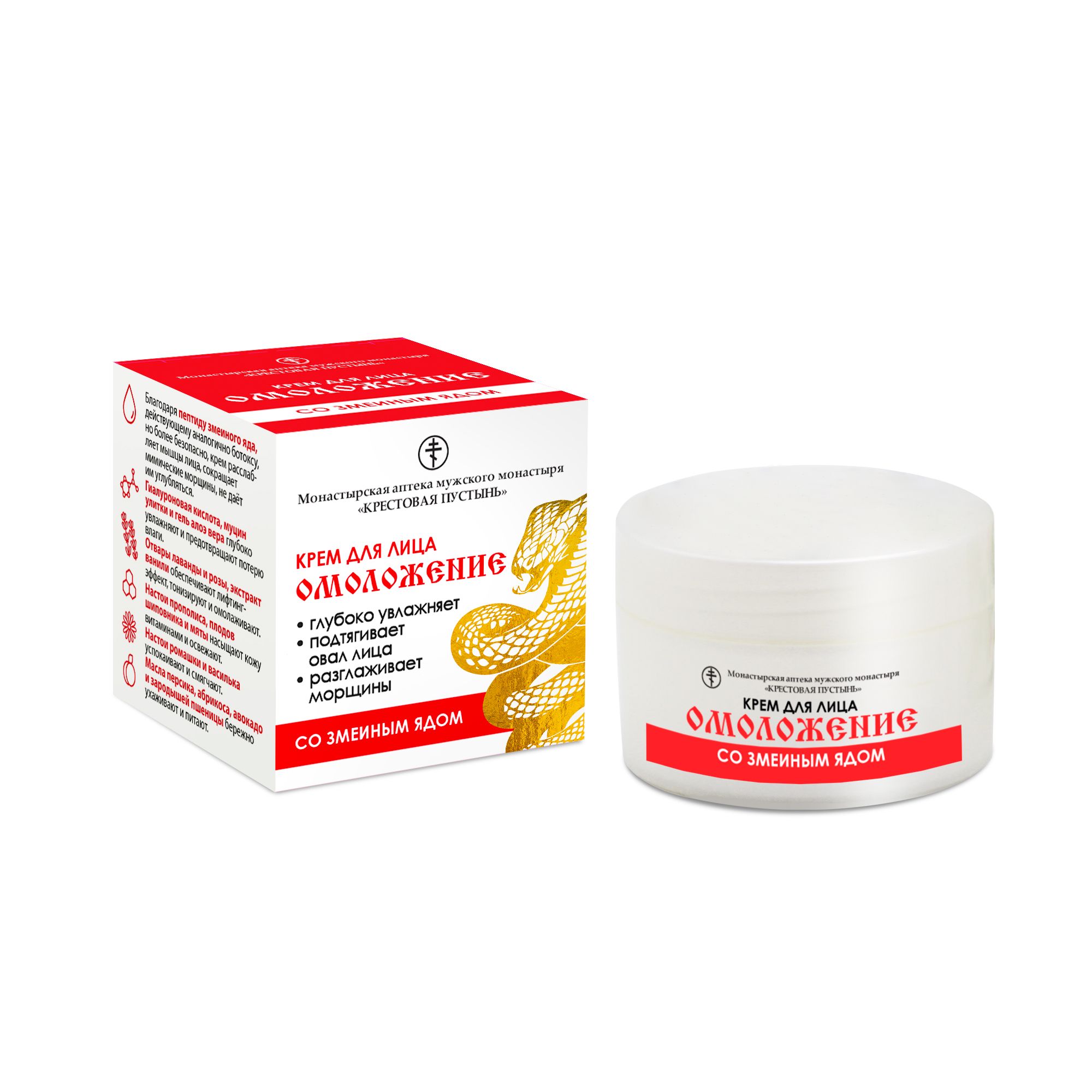Крем для лица "Омоложение" со змеиным ядом, пластик 50 мл, "Солох аул"