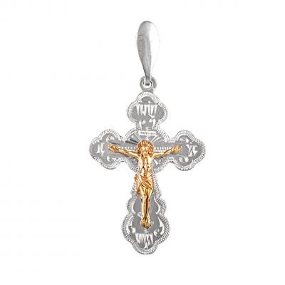 Крест из серебра 925*/375* комбинированный гравированный литье 9-053-5