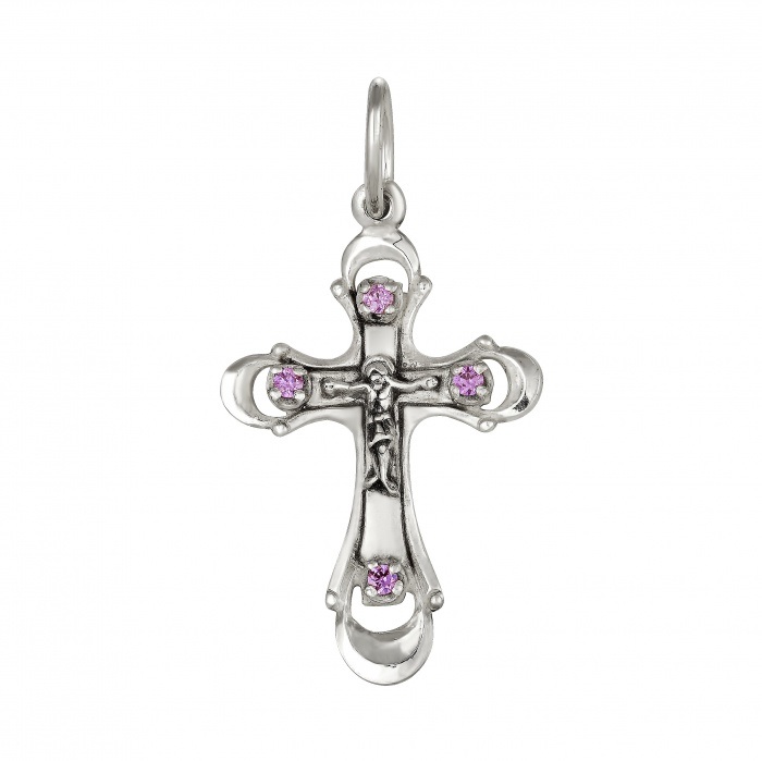 Крест из серебра 925* лит с камнем ч/ч 3-001-3
