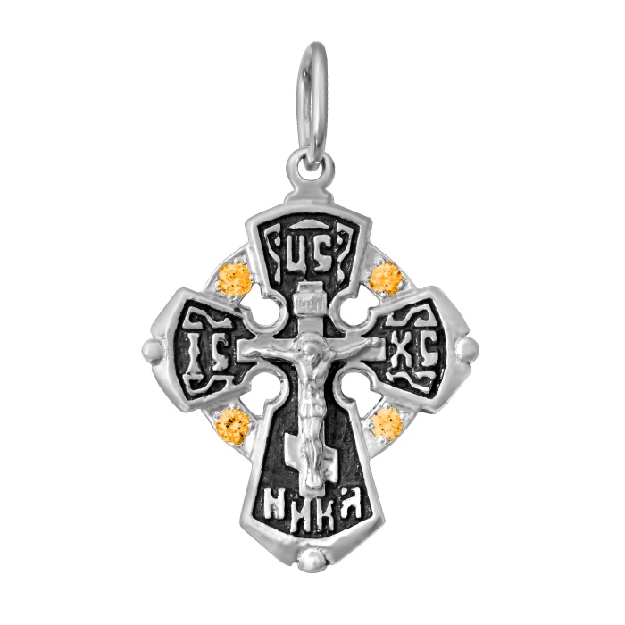 Крест из серебра 925* лит с камнем част. черненый 3-080-3