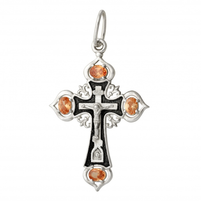 Крест из серебра 925* лит с камнем част. черненый 3-081-3