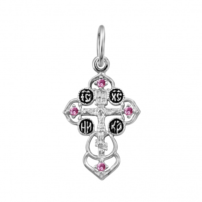 Крест из серебра 925* литье с камнем част. черненый, 3-103-3