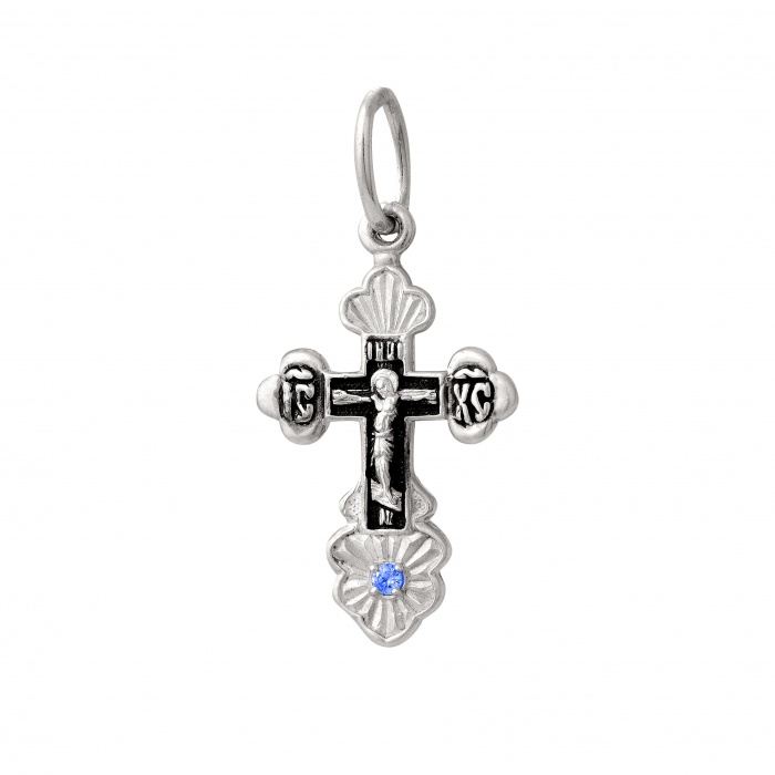Крест из серебра 925* литье с камнем част. черненый, 3-112-3