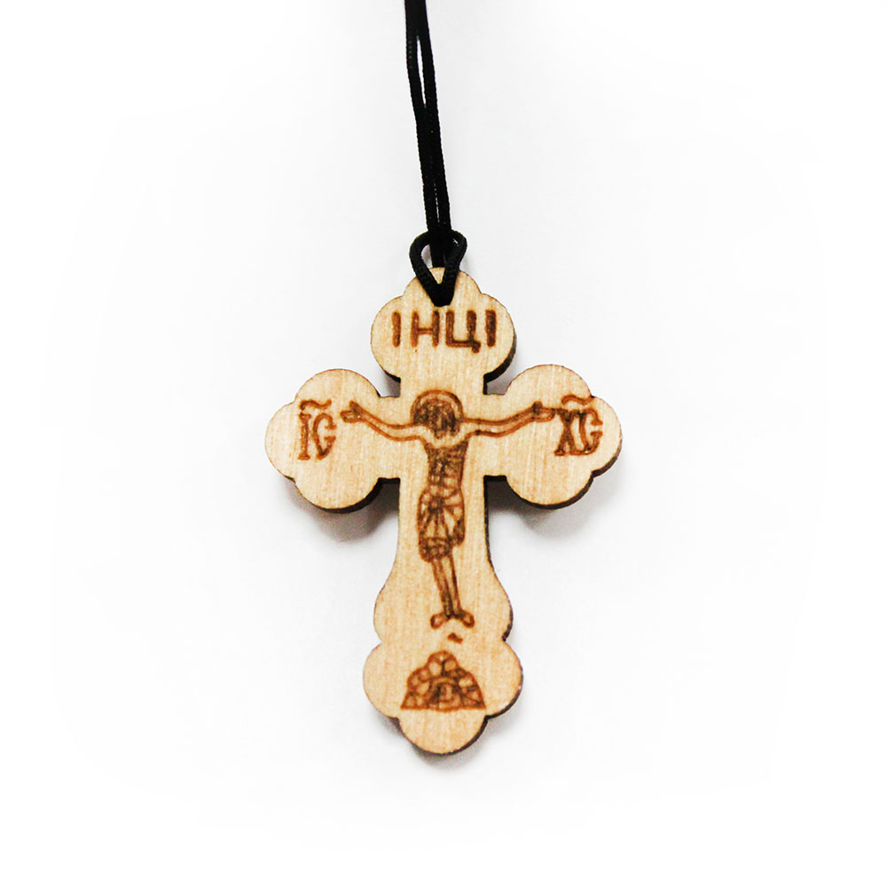 Крест нательный деревянный (3,5 см. х 2,5 см) + шнурок-резинка